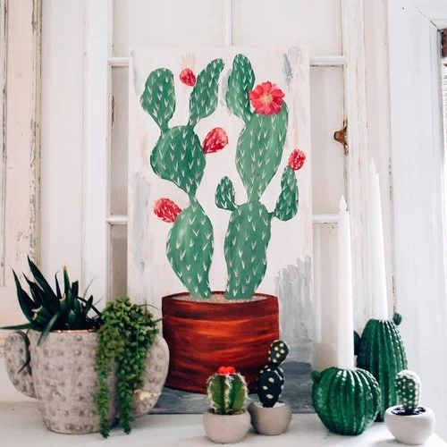 "I absolutely love my painting, and Shanna was incredible to work with! Her use of color in the piece is the perfect pop to my mantle, I love how the pinks accent the cool greens so perfectly. Shanna was able to make the cactus I'd imagined for my mid-century/boho space come to life and I could not be happier with how it turned out."